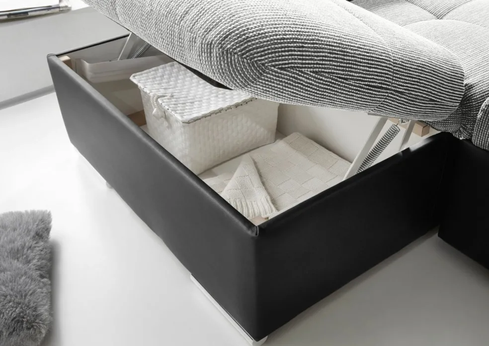méridienne avec coffre de lit à gauche