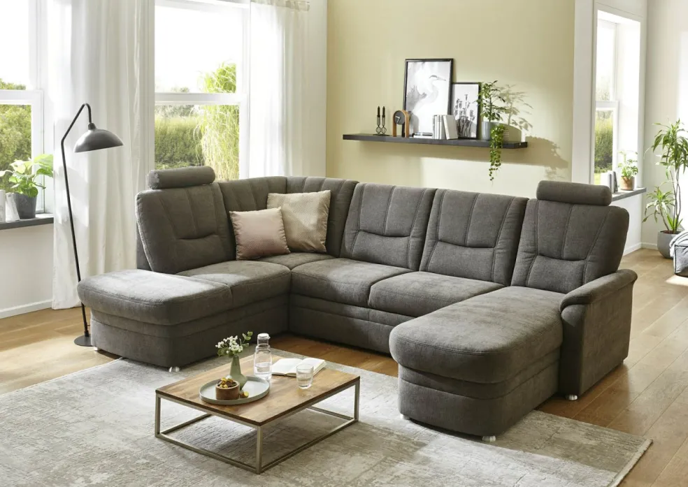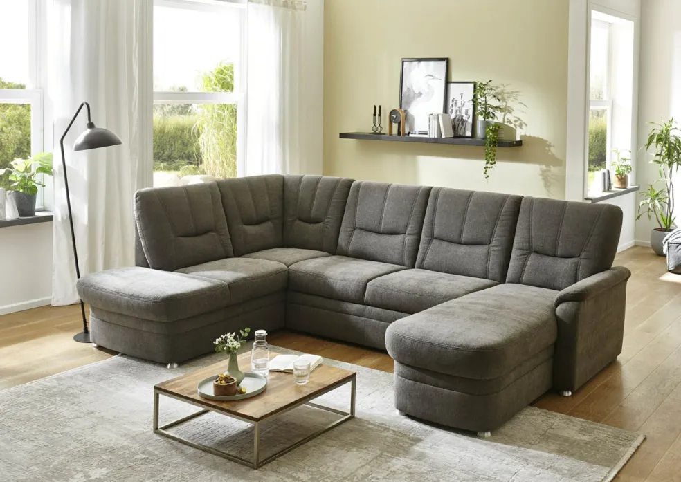 | Equipement canapés: | Dos habillé, Méridienne à droite, incl. coffre de lit | ||
