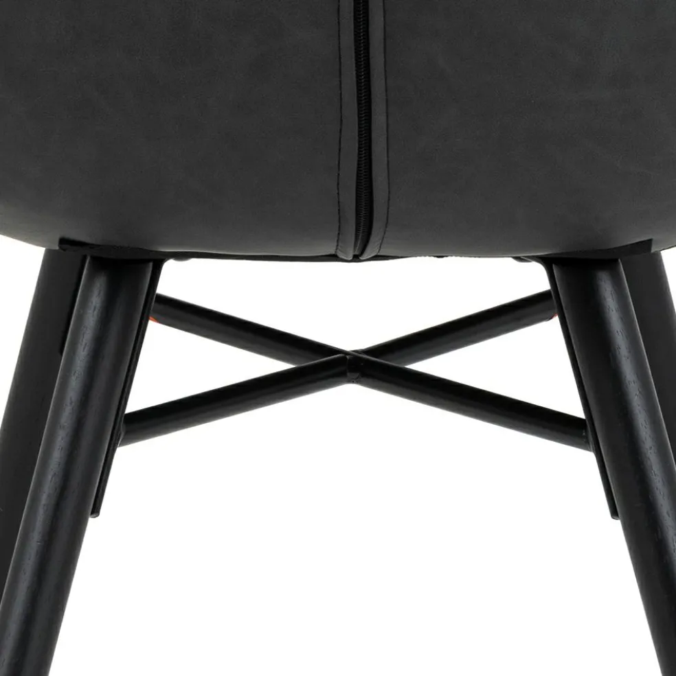 Piètement: croix en métal laqué ton noir ; pieds en bois d’hévéa massif (Asie), laqué ton noir