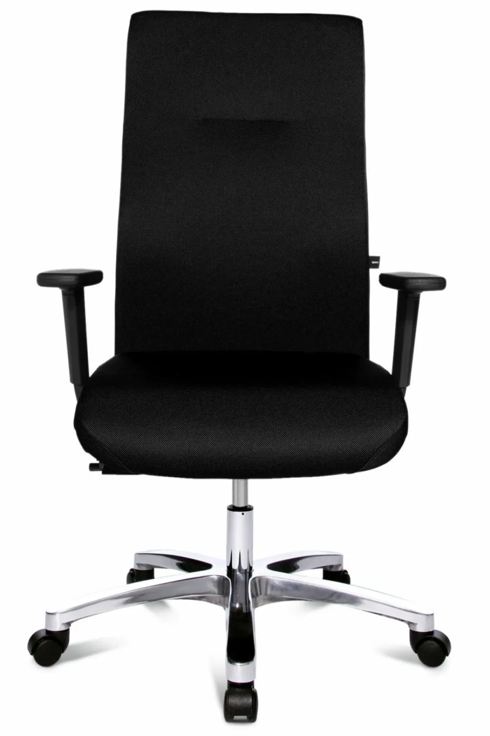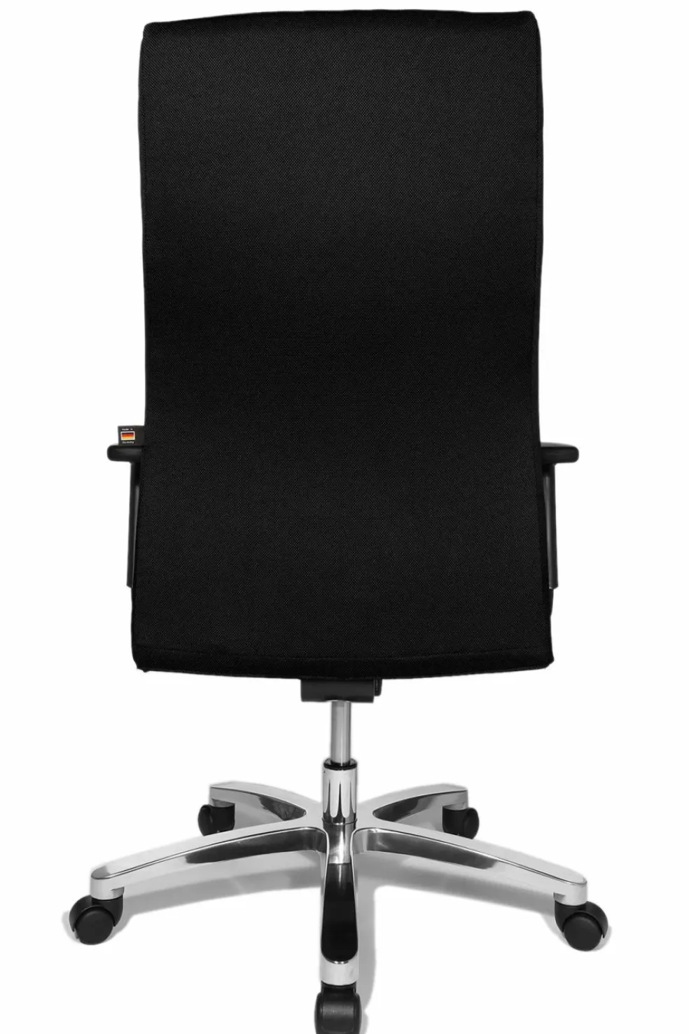 Piètement en croix équipé de roulettes de sécurité doubles et freinées d’après le poids du corps pour moquettes