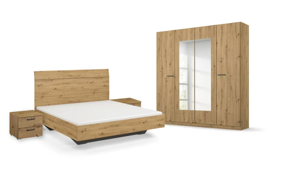1 armoire à vêtements avec 4 portes (dont 2 portes avec miroir), 2 tablettes et 2 barres de penderie