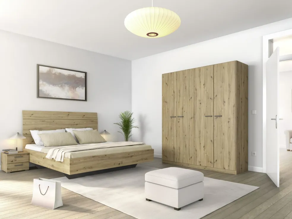 1 armoire à vêtements avec 4 portes, 2 tablettes et 2 barres de penderie
