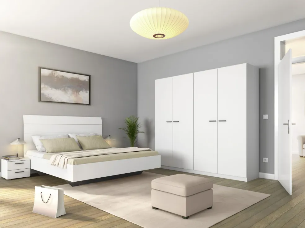 1 armoire à vêtements avec 4 portes, 2 tablettes et 2 barres de penderie