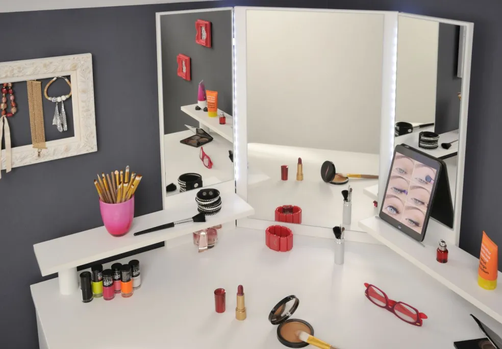 avec 1 miroir d’angle en 3 parties avec éclairage LED inclus