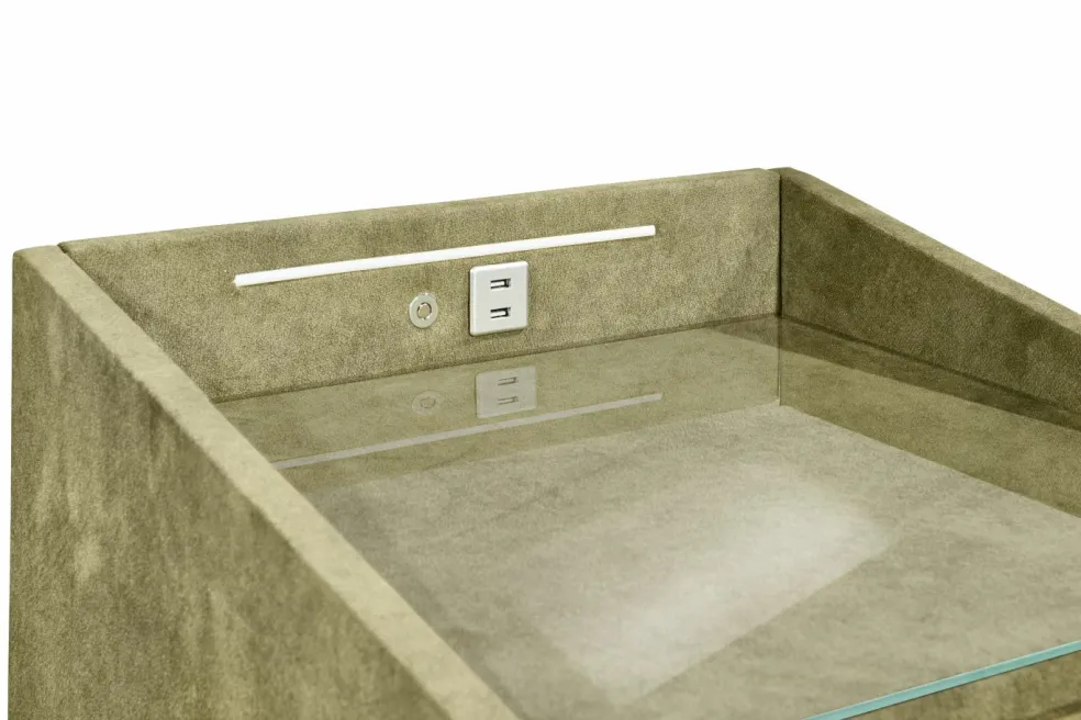 | Équipement Commodes Phono Bureau Étagère: | Plateau en verre, Tiroirs, avec port USB, incl. éclairage | ||