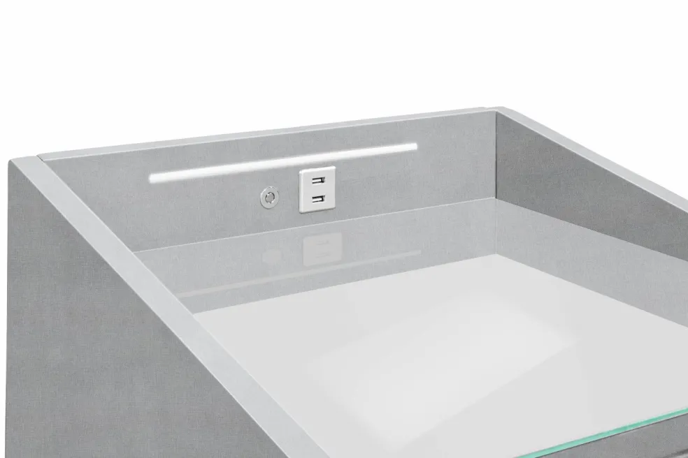 | Équipement Commodes Phono Bureau Étagère: | Plateau en verre, Tiroirs, avec port USB, incl. éclairage | ||