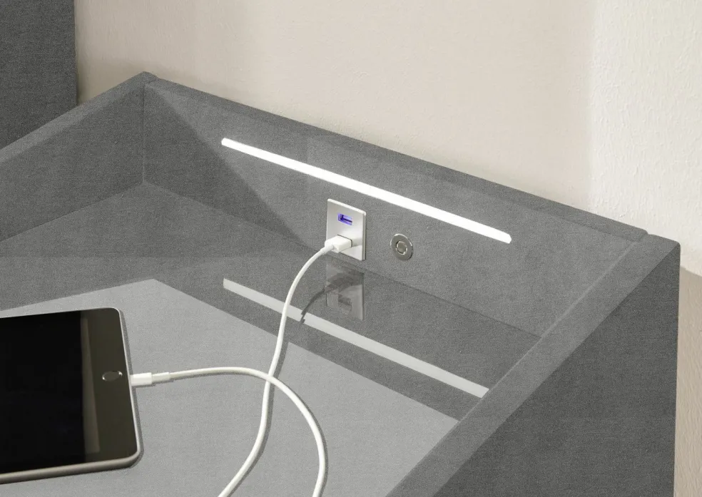 | Équipement Commodes Phono Bureau Étagère: | Plateau en verre, Tiroirs, avec port USB, incl. éclairage | ||