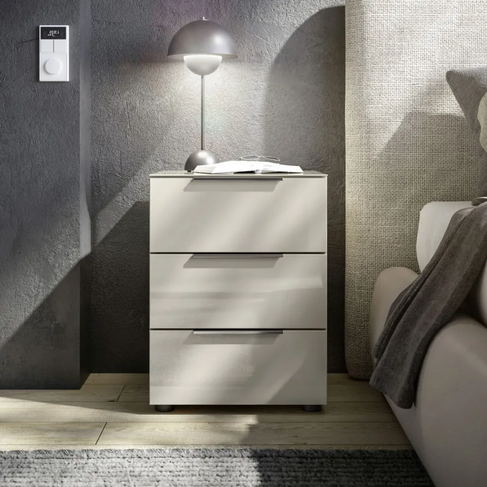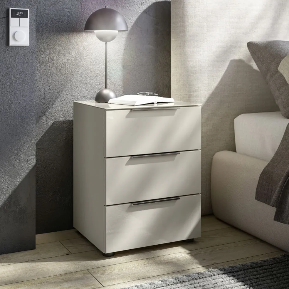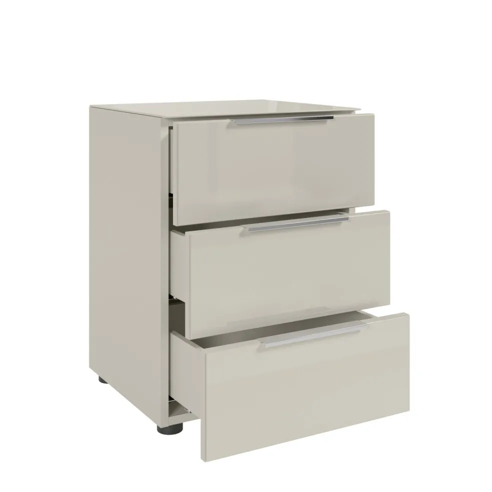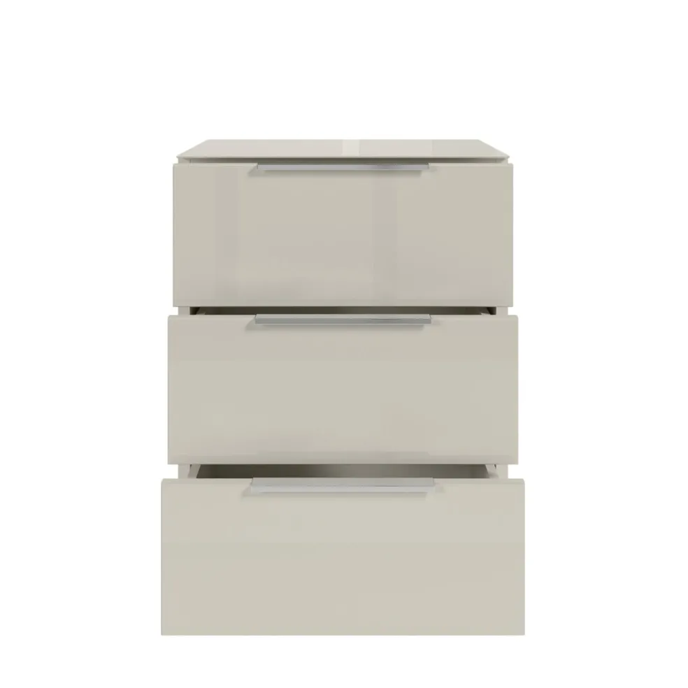Caisson: ton cachemire, panneaux de particules surfacés et mélaminés (PPSM), tablette en verre lisse