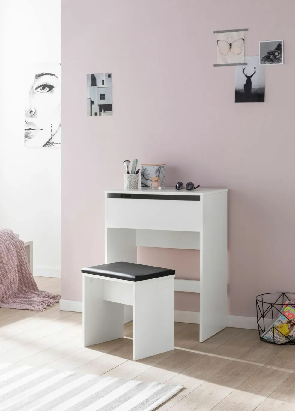 avec tabouret et miroir