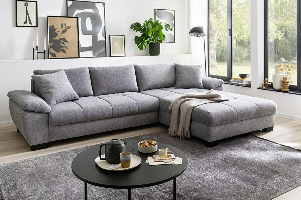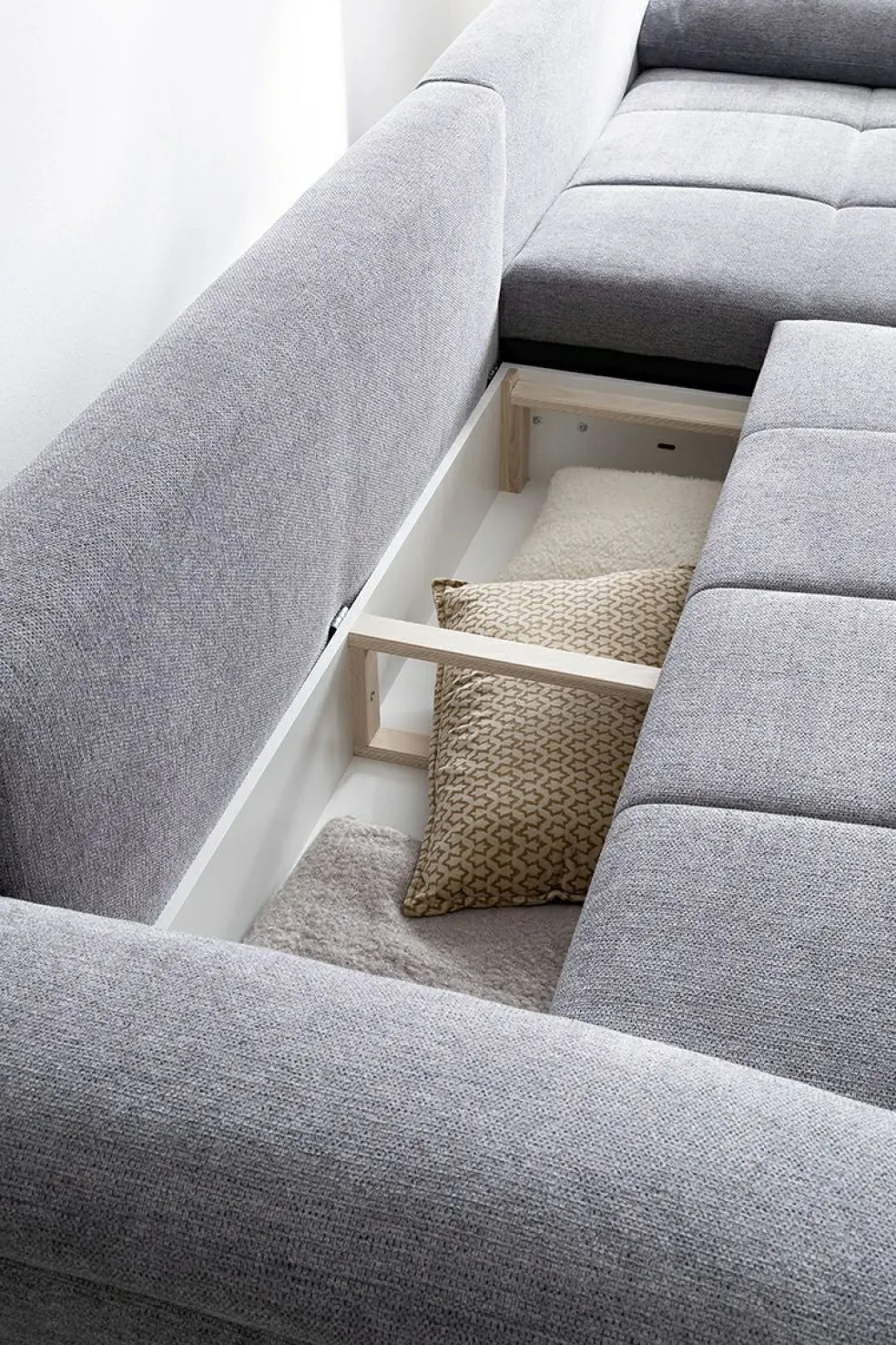 | Equipement canapés: | Dos habillé, Méridienne à droite ou à gauche, incl. coffre de lit, incl. coussins | ||