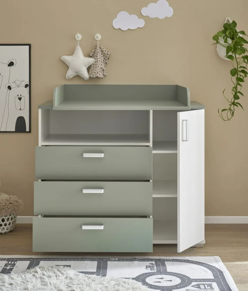 | Équipement Commodes Phono Bureau Étagère: | Portes, Tiroirs, incl. plan à langer | ||