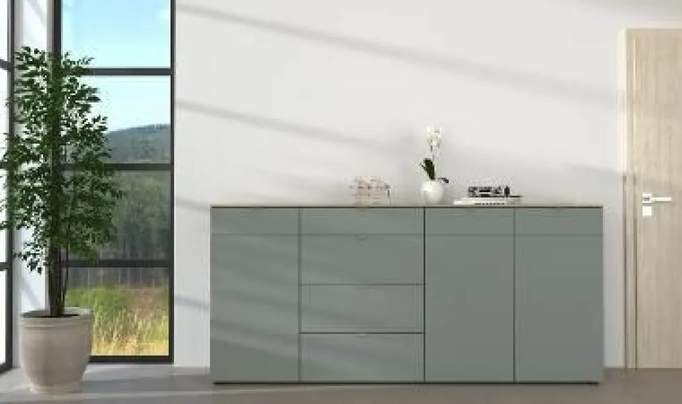 Facade : MDF (panneau de fibres a densite moyenne) vert roseau super mat
