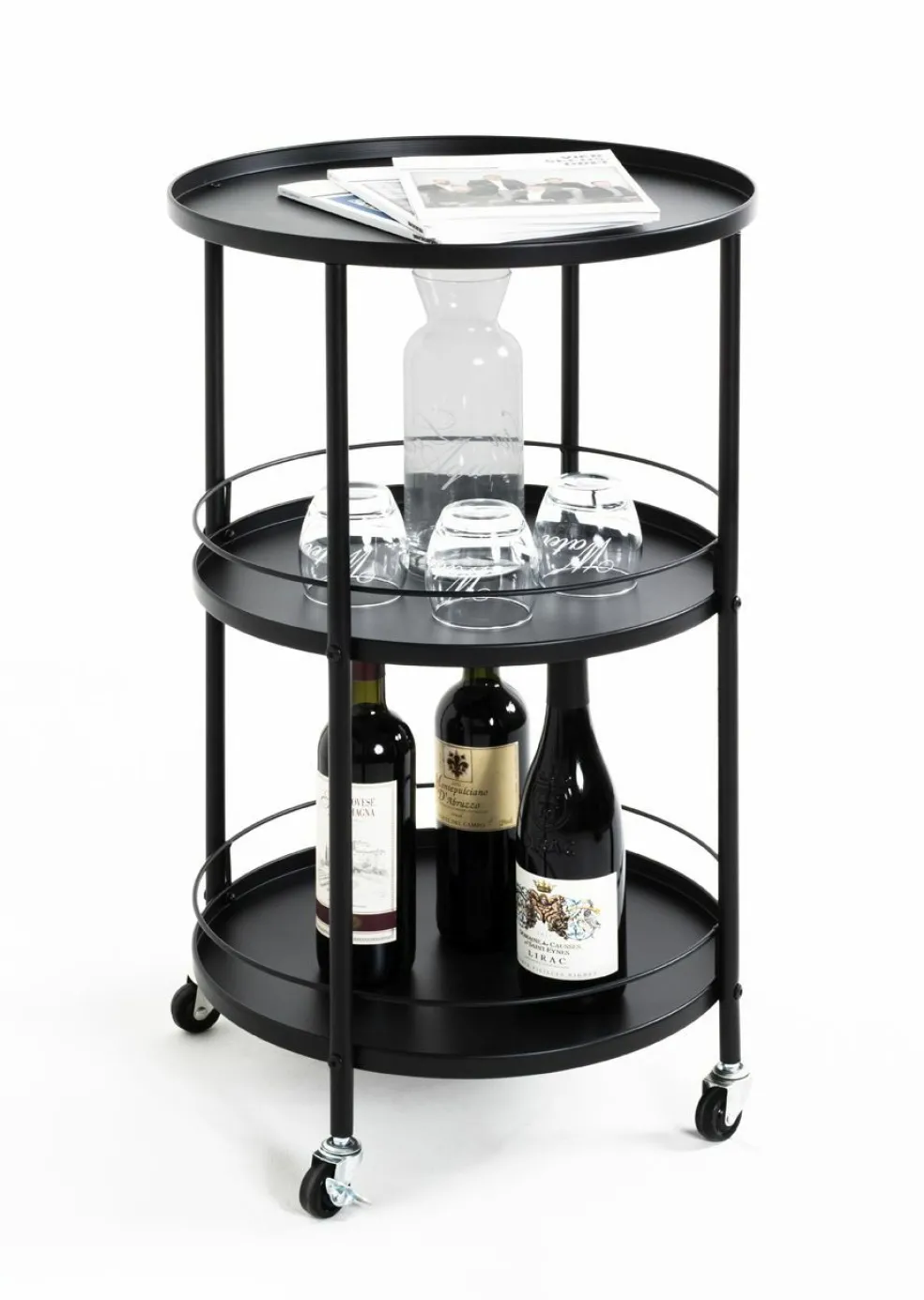 avec 3 tablettes et 4 roulettes
