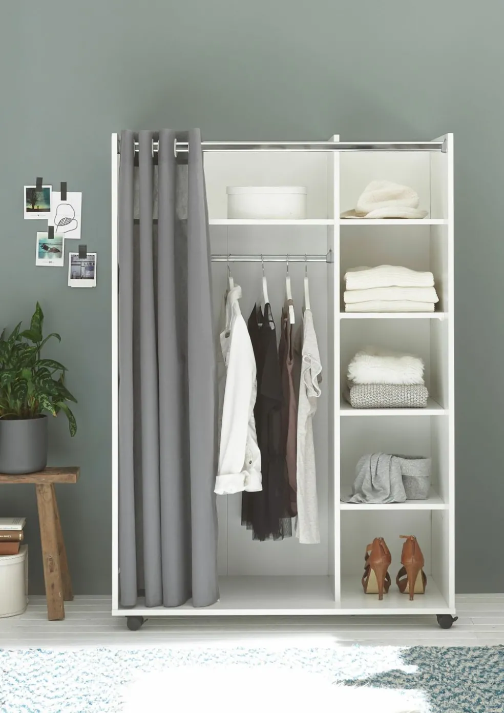 1 dressing avec rideau en tissu