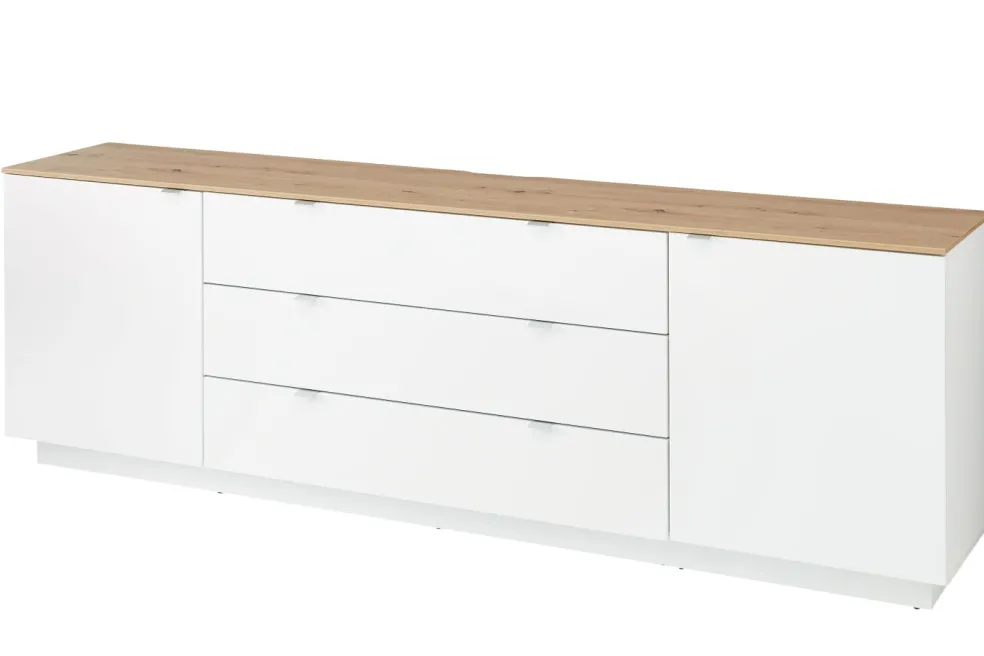 Caisson: ton blanc avec panneau supérieur décor chêne Artisan