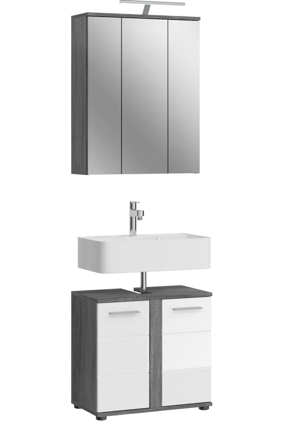 1 armoire de toilette avec 3 portes miroir et 6 tablettes amovibles, incl. lampe de salle de bains
