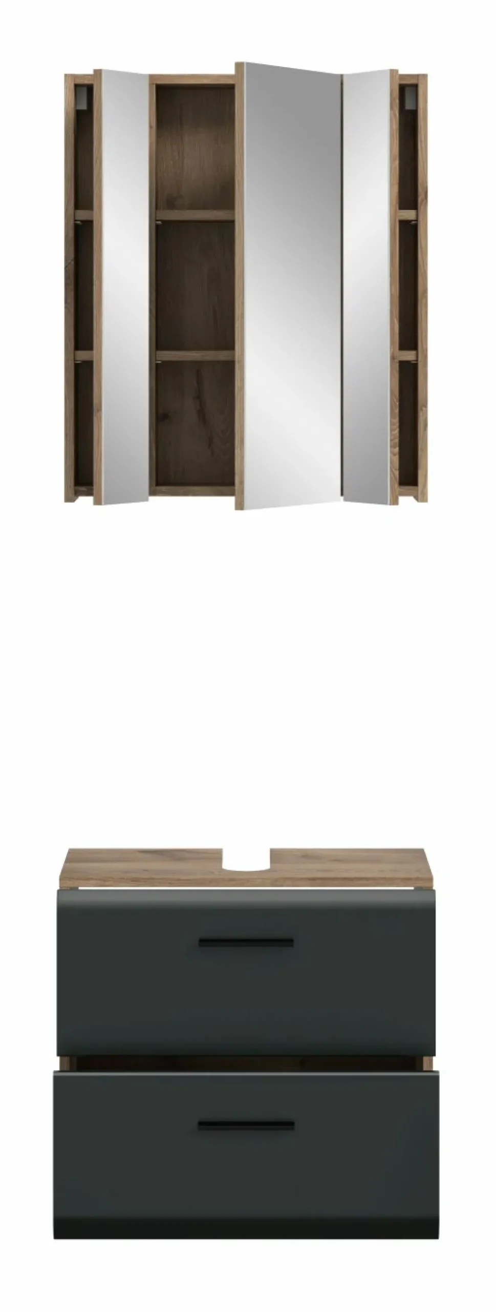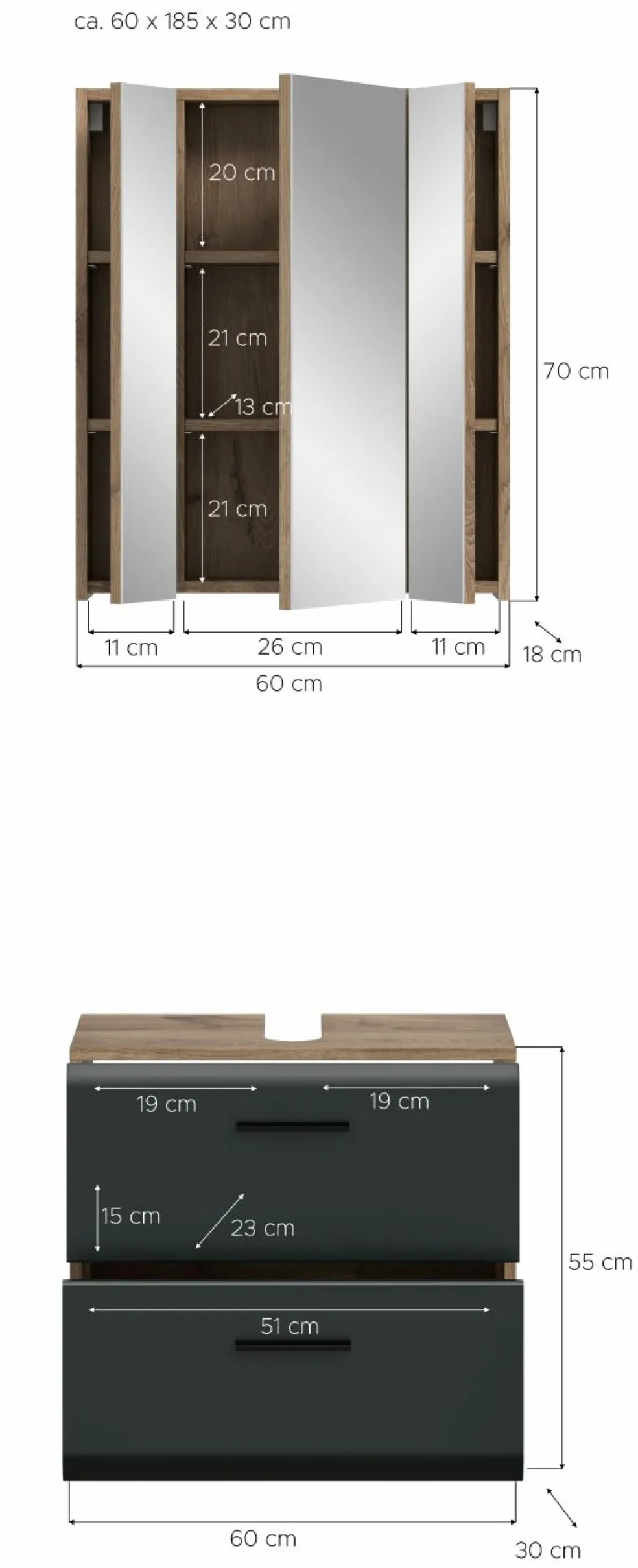 Façade: MDF (panneaux de fibres de bois de densité moyenne) ton noir mat thermoformé / miroir