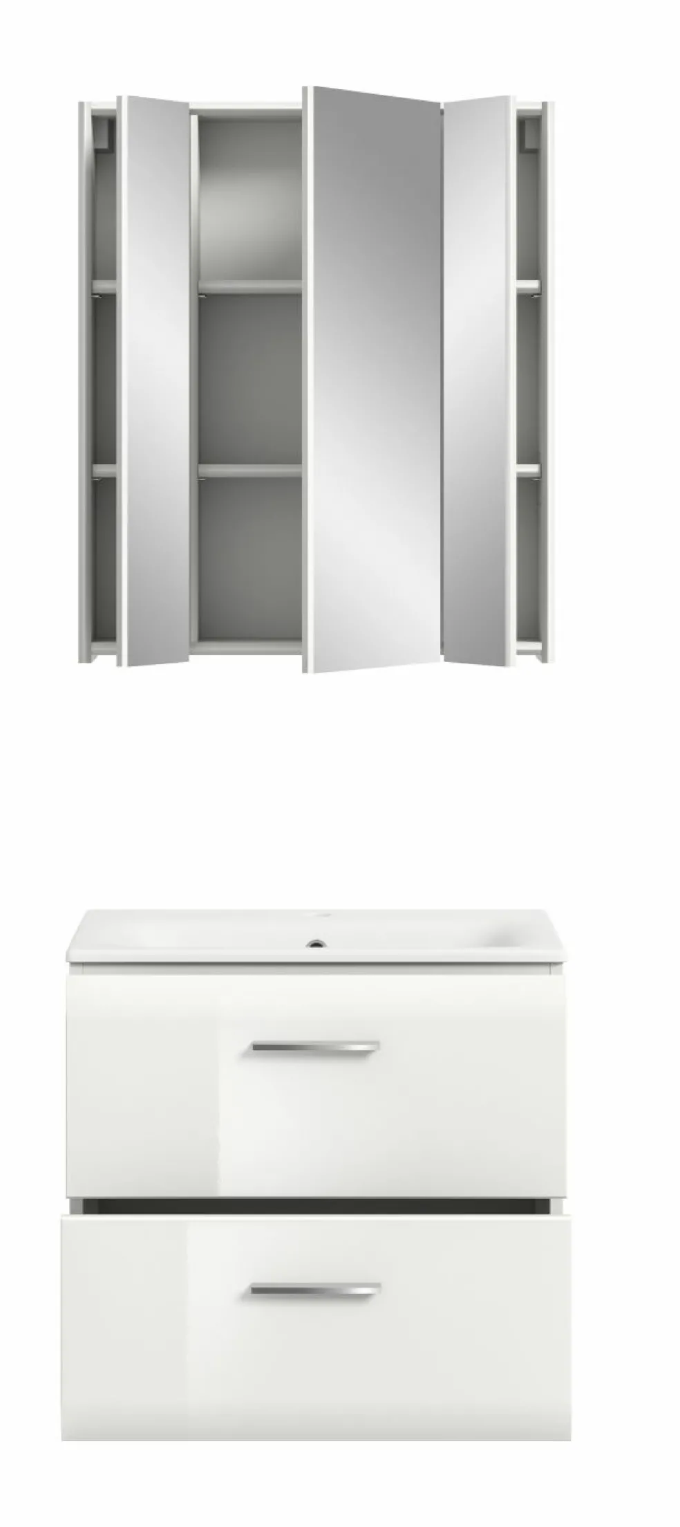 Façade: MDF (panneauxdefibresde bois dedensité moyenne) thermoformé ton blanc ultra brillant / miroir