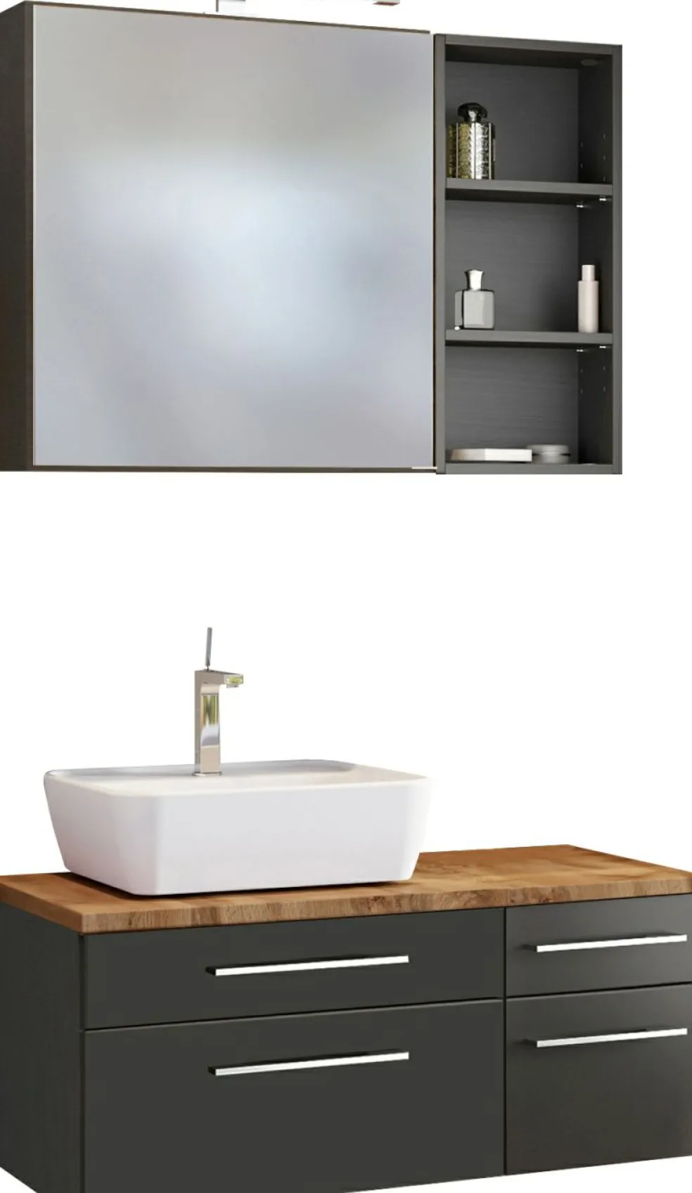 1 meuble sous vasque avec 2 tiroirs bas et 2 tiroirs hauts avec fermeture amortie, incl. découpe siphon