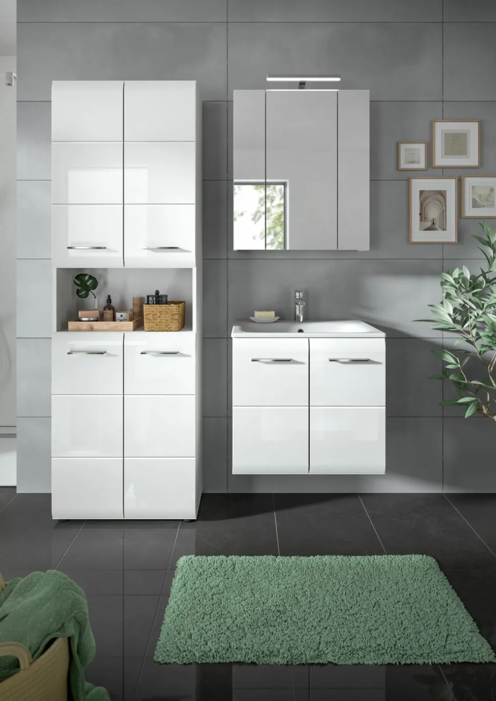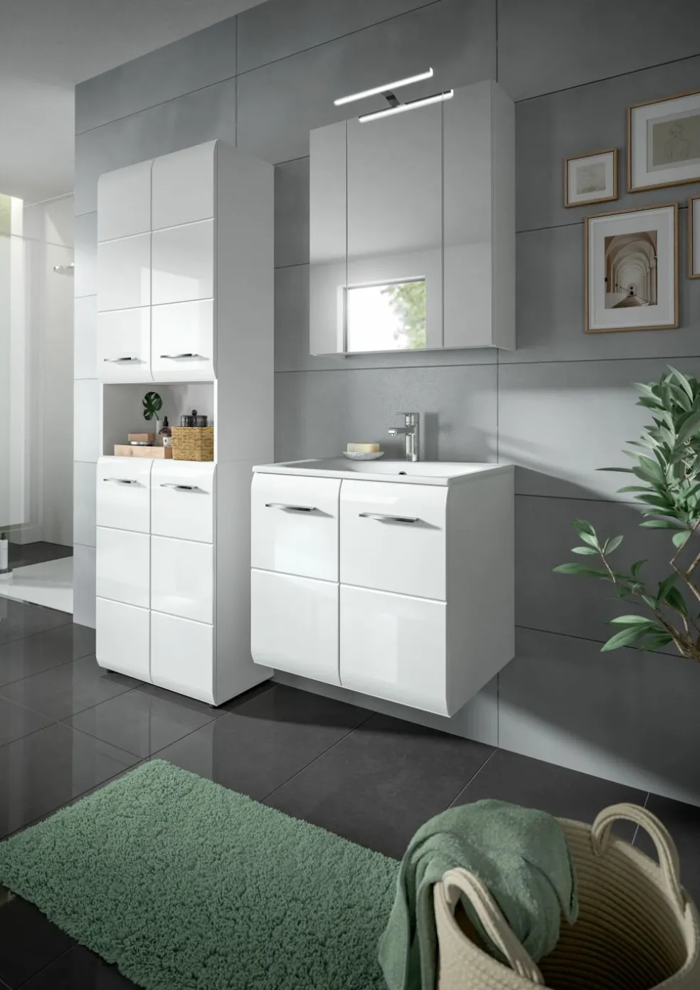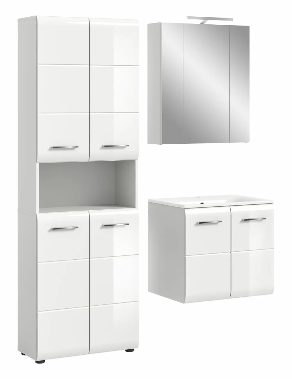 1 armoire de toilette avec 3 portes miroir et 4 tablettes amovibles, incl. lampe de salle de bains