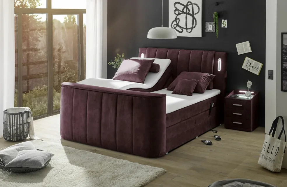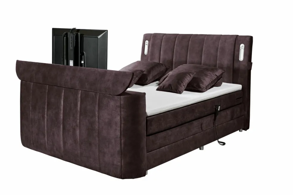 1 pied de lit matelassé avec espace de rangement pour téléviseur jusqu’à 40 pouces (fixation TV motorisée)