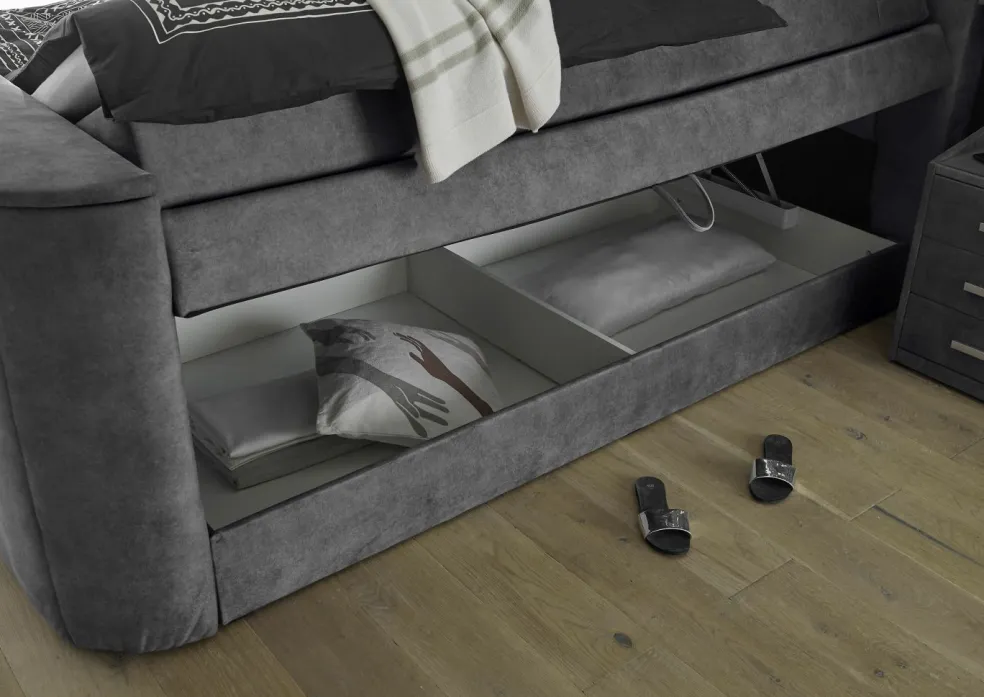 1 pied de lit matelassé avec espace de rangement pour téléviseur jusqu’à 40 pouces