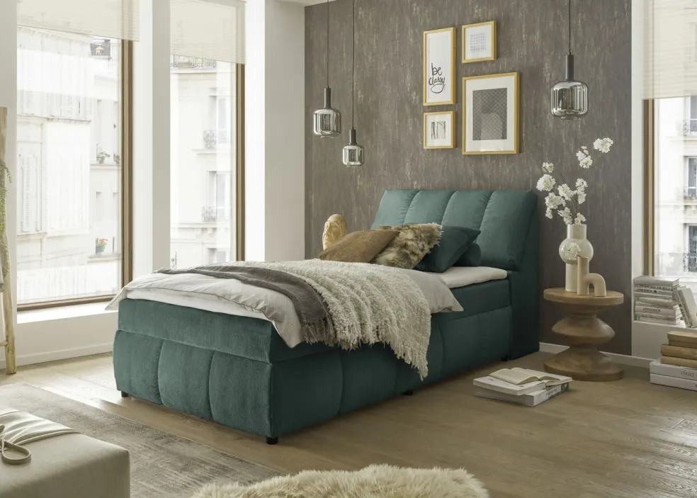 Caisson stable en contreplaqué de qualité, âme à ressorts bonnell 4 spires 2,2 mm, 1 couche de mousse T25 d’env. 1 cm d’épaisseur