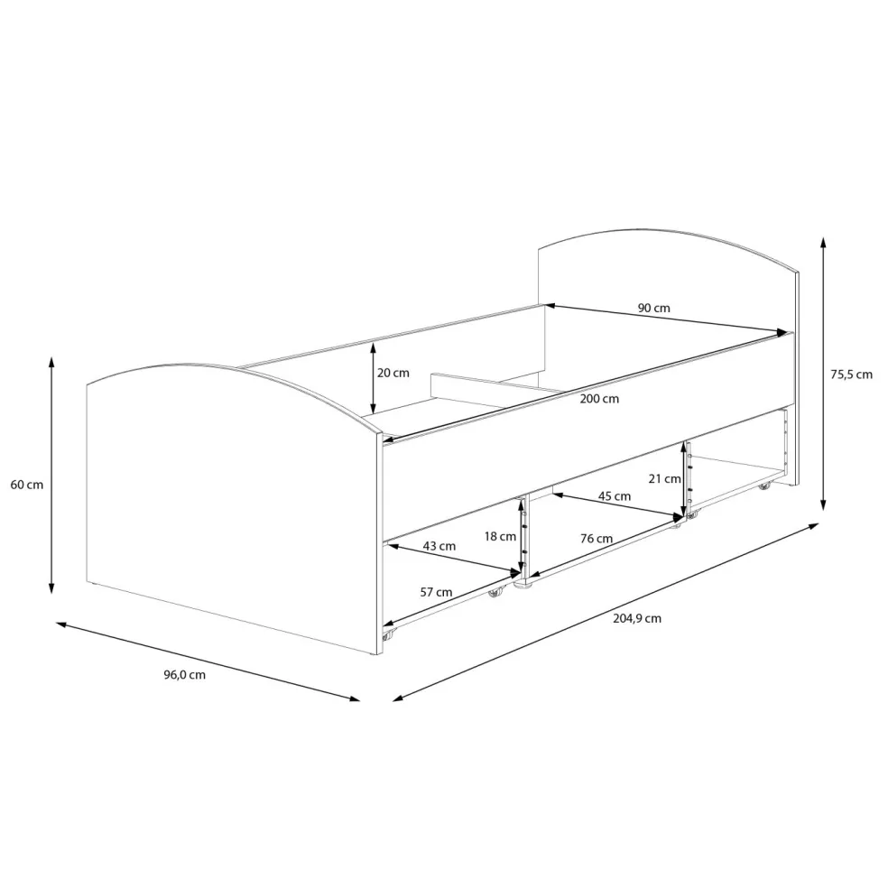 | Surface de couchage: | 90x200cm | ||