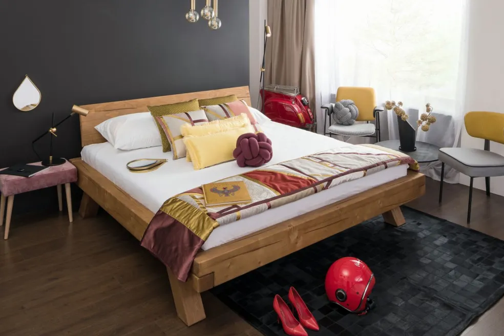 cadre de lit avec montant central permettant d’utiliser un grand ou deux petits sommiers à lattes.