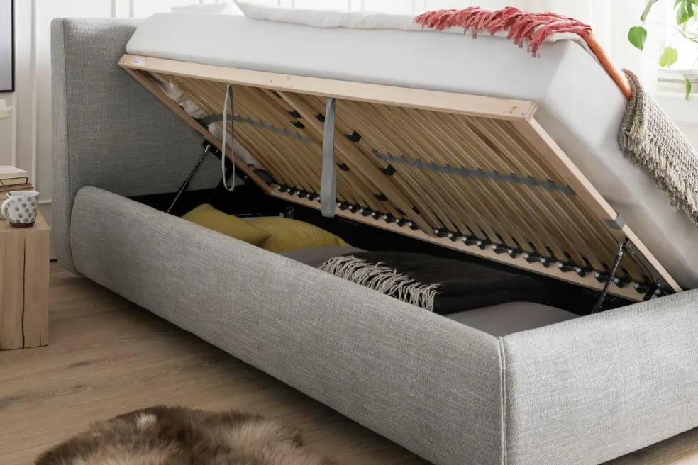 inclus : 2 coffres de lit avec multi-perforations et sommiers à lattes multiplis avec ouverture latérale