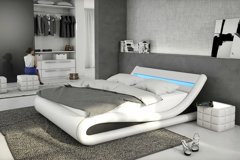 avec bandeau lumineux dans la tête de lit