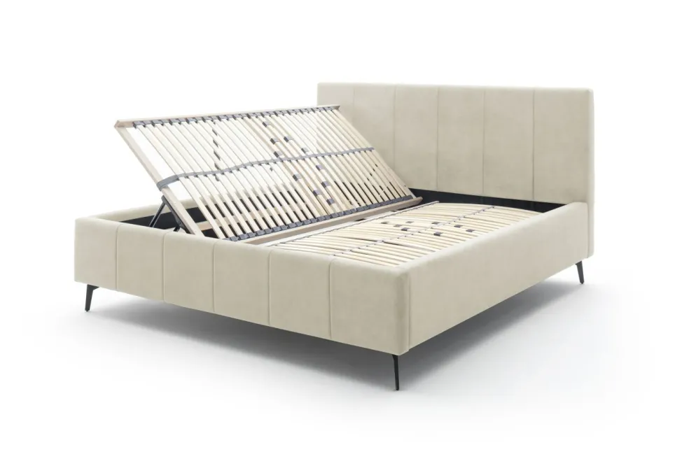 inclus : 2 coffres de lit avec aération et sommiers à lattes en bois multiplis avec ouverture latérale