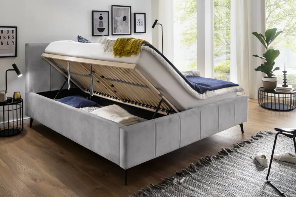 inclus : 2 coffres de lit avec aération et sommiers à lattes en bois multiplis avec ouverture latérale