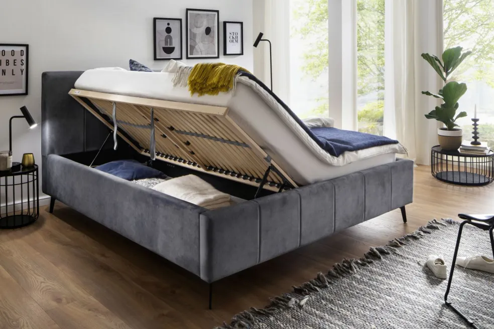 inclus : 2 coffres de lit avec aération et sommiers à lattes en bois multiplis avec ouverture latérale