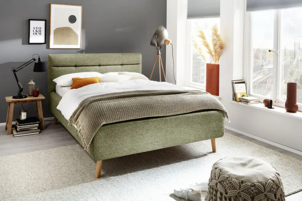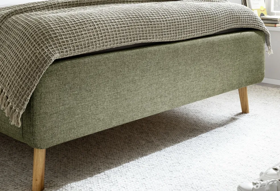 Inclus: coffre de lit avec aération et sommiers à lattes en bois multiplis avec ouverture latérale