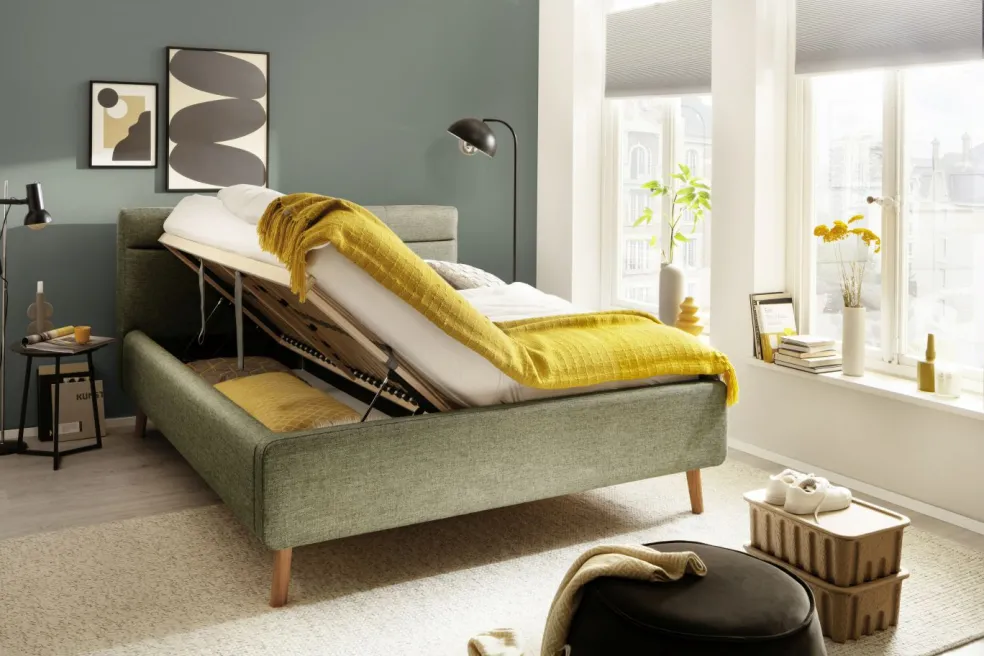 Inclus: 2 coffres de lit avec aération et sommiers à lattes en bois multiplis avec ouverture latérale