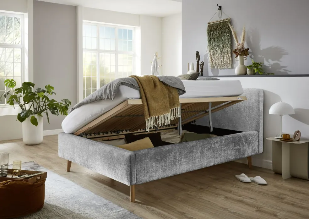 inclus : un coffrede lit avec aération et sommierà lattes en bois multiplis avec ouverture latérale