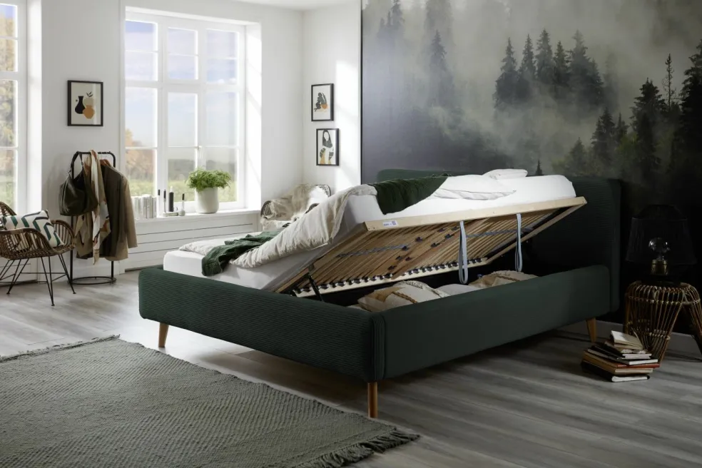 inclus : coffre de lit et sommier à lattes multiplis avec ouverture latérale