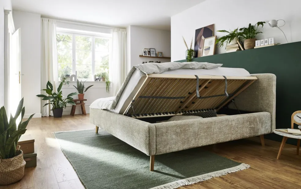 inclus : 2 coffres de lit avec aération et sommiers à lattes en bois multiplis avec ouverture latérale