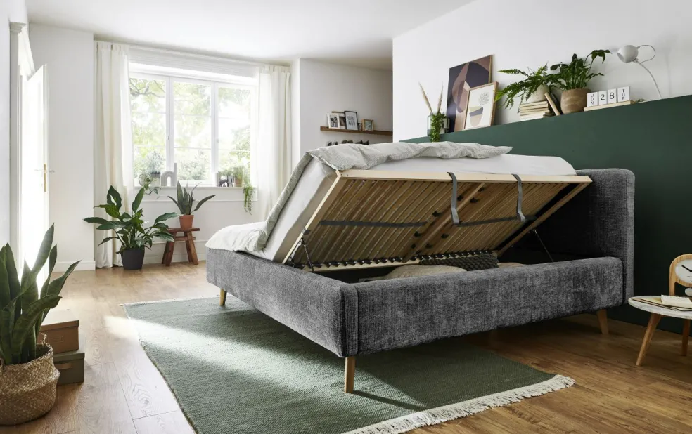 inclus : 2 coffres de lit avec aération et sommiers à lattes en bois multiplis avec ouverture latérale
