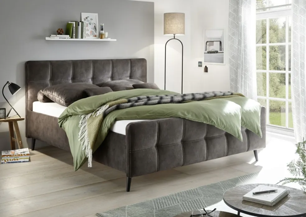 1 cadre de lit avec tête de lit et pied de lit capitonnés