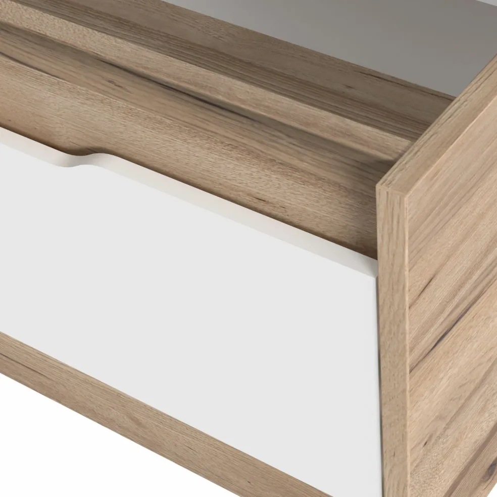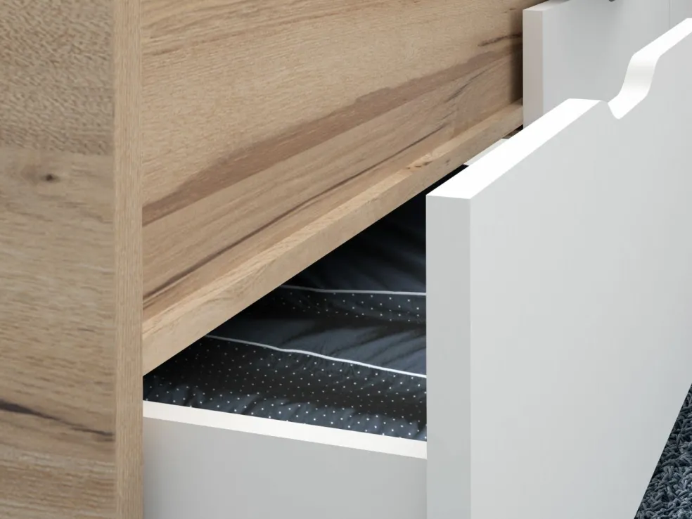 décor chêne planches de chêne et façades tiroirs ton blanc