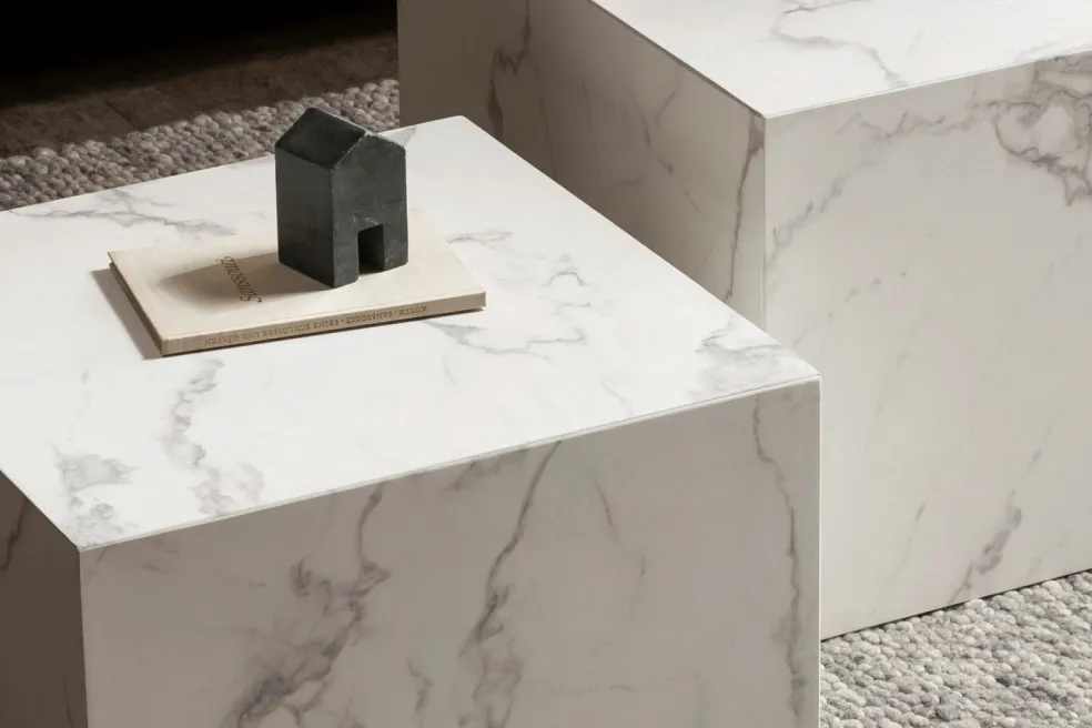 MDF (panneaux de fibres de bois de moyenne densité) revêtu d’un film en mélamine aspect marbre blanc