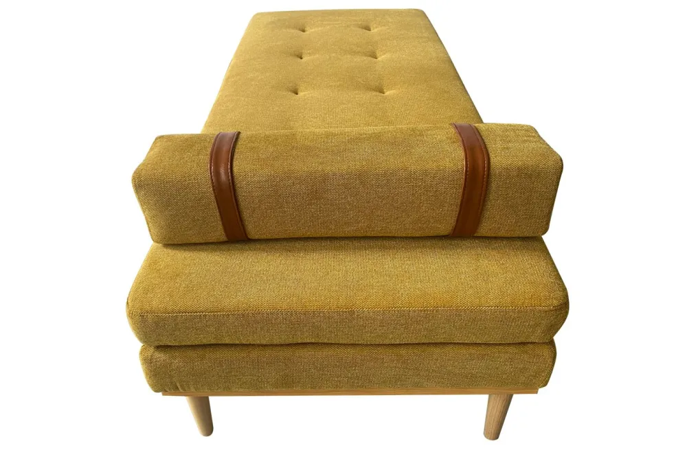 Revêtement : tissu chiné ton jaune 100% polyester avec contrastes en cuir synthétique marron 100% polyuréthane