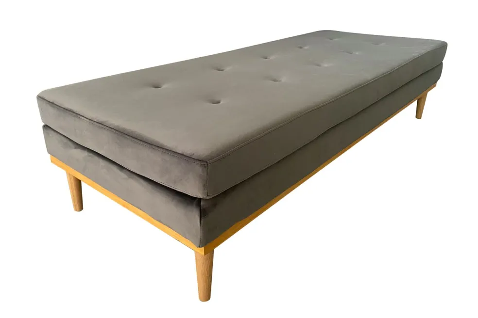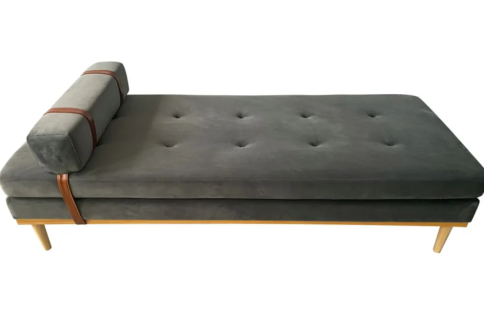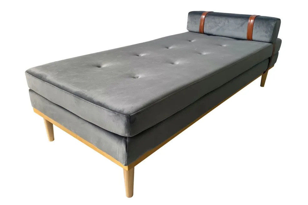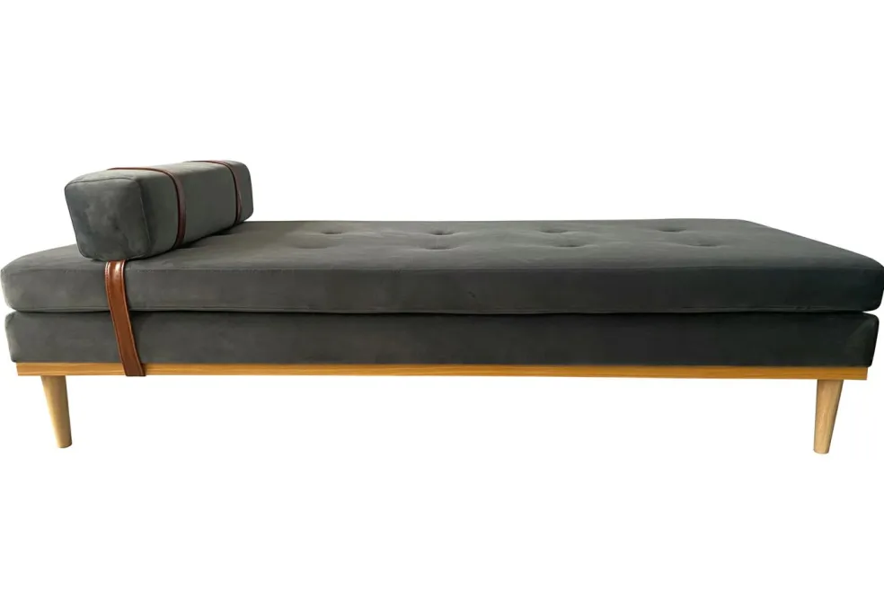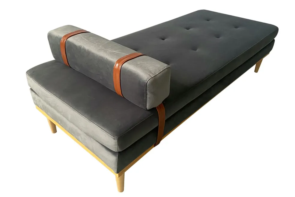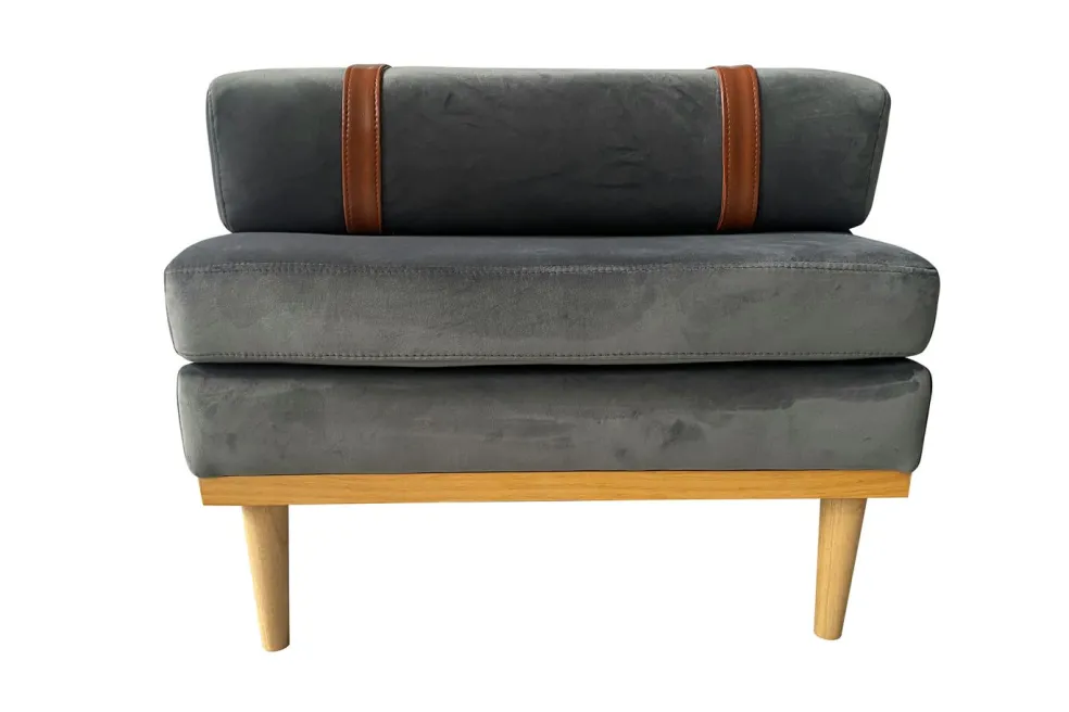 Revêtement : tissu velours ton gris 100% polyester avec contrastes en cuir synthétique marron 100% polyuréthane