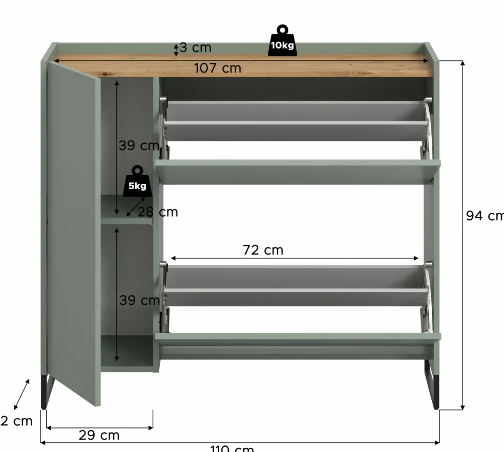 | Meuble à chaussures | 110 | 94 | 32 |