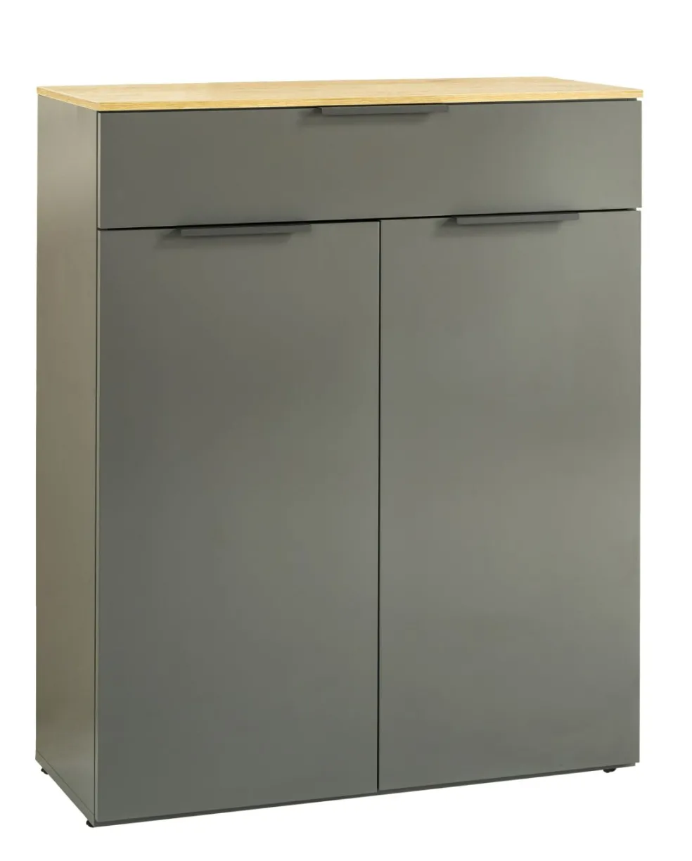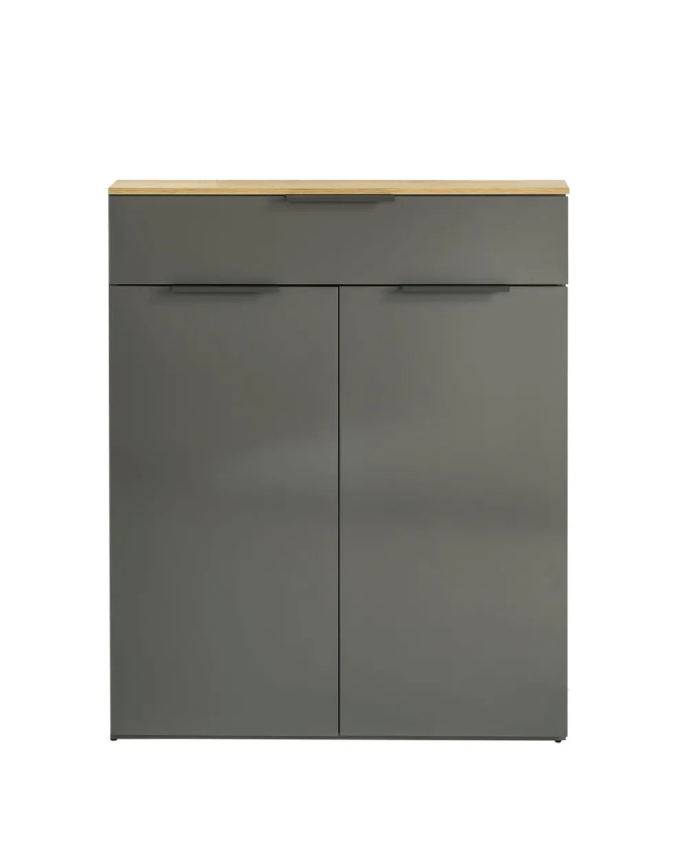 Caisson et façade: décor chêne Artisan et ton gris titane ultra brillant