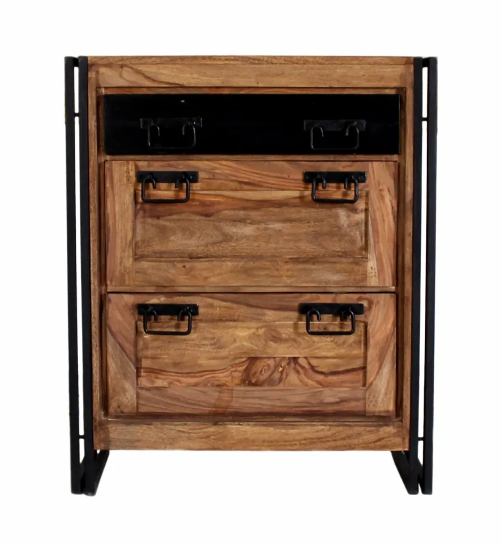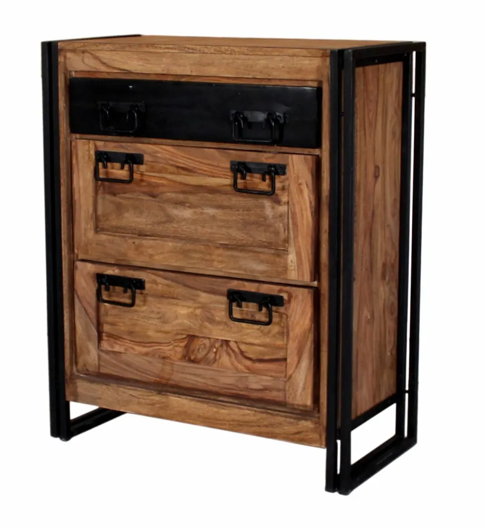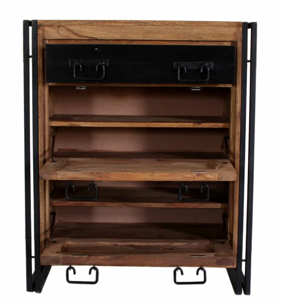 Le métal et le bois sont patinés aspect vieilli (« used look »). La fabrication artisanale confère à ce meuble son caractère individuel.