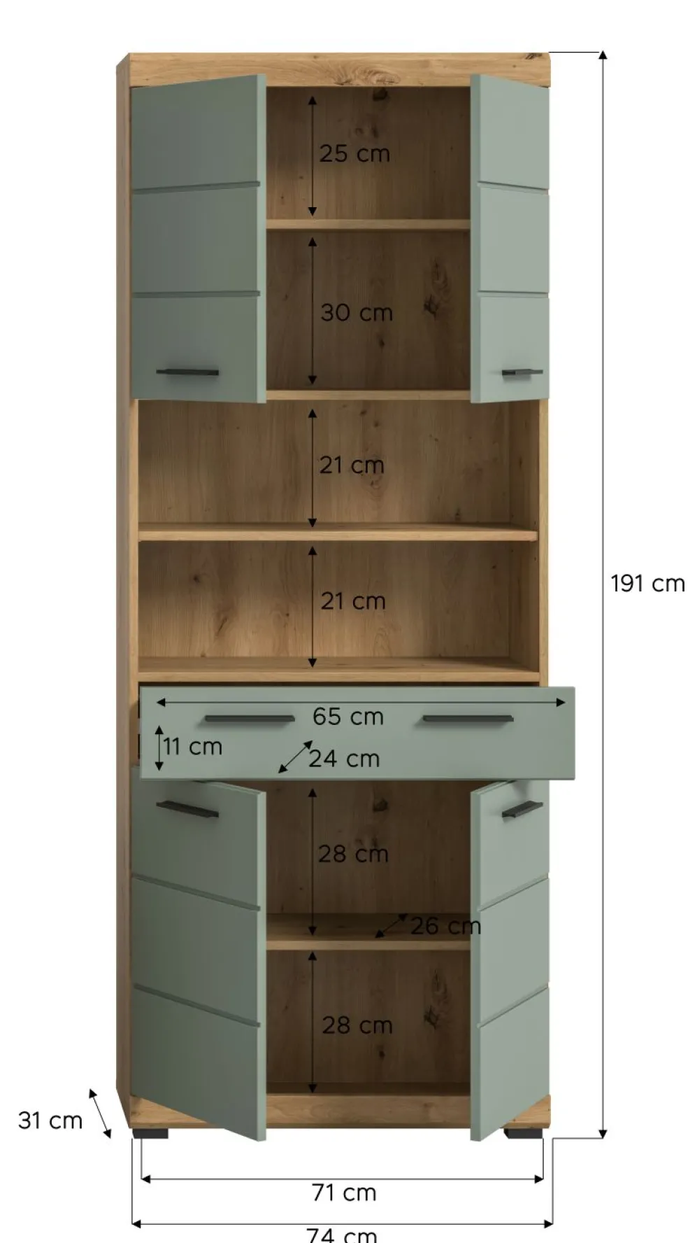 | Dimensions : | L/H/P env. 74/191/31 cm | ||
