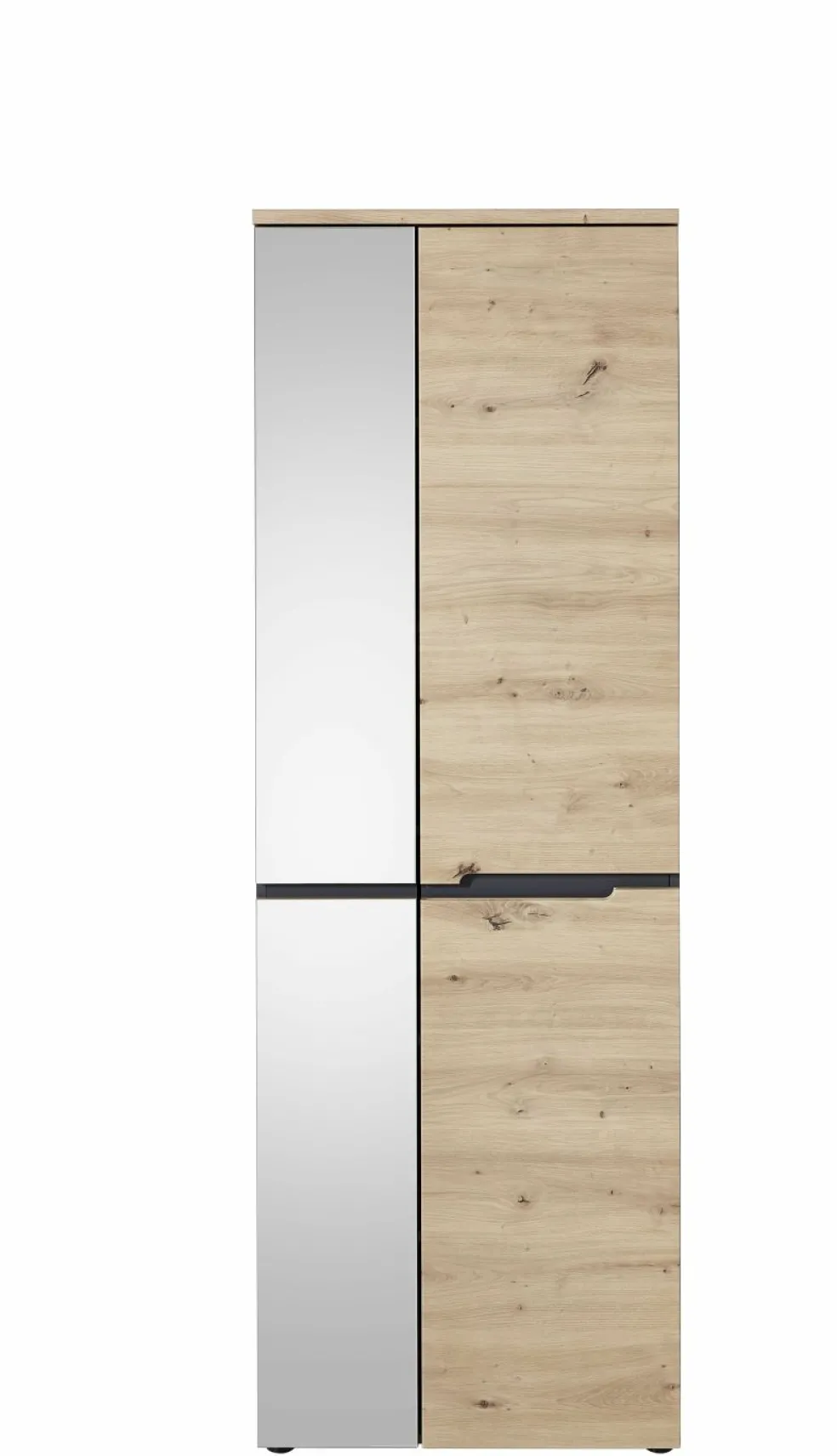 Façade : MDF décor chêne Artisan et contrastes ton graphite / miroir